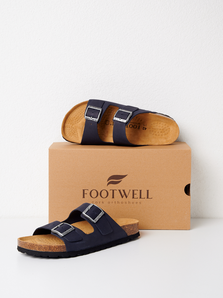 Сандалии повышенного комфорта в глубоком синем цвете "океан" для уверенных и полных решительности мужчин.
