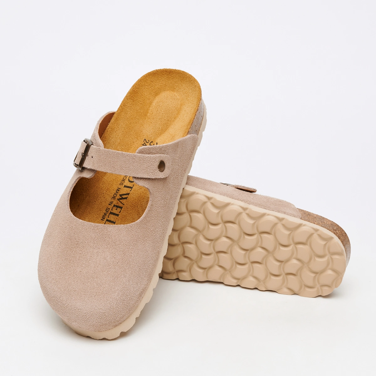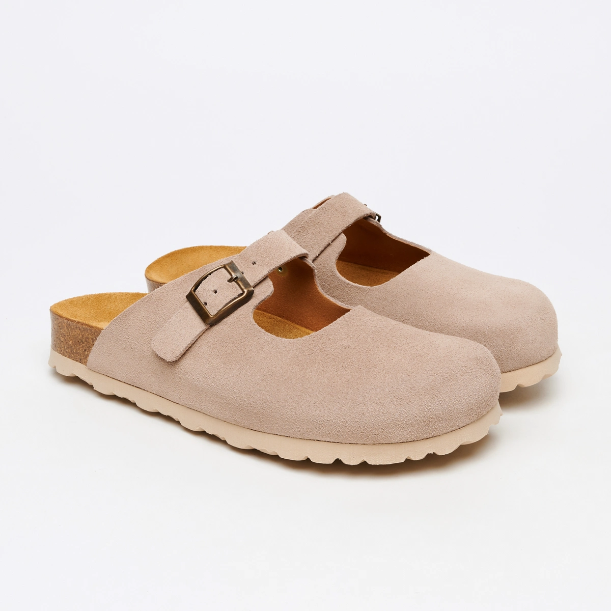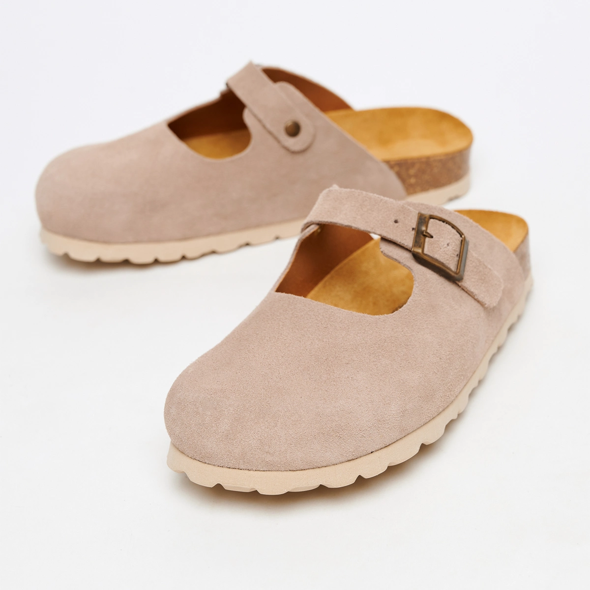 Изысканные и невероятно удобные — эти сабо-лодочки создают утонченный силуэт, а теплый бежевый оттенок добавляет образу благородной сдержанности. Особый шарм этим сабо придает ремешок, напоминающий классические лодочки — он фиксирует стопу, подчеркивая ее изящество. Натуральная пробковая подошва обеспечивает невесомую легкость при ходьбе, делая их идеальными для долгих прогулок и активного дня. Универсальный бежевый цвет легко дополнит как офисный образ с брюками-кюлотами, так и романтичный лук с платьем-миди.