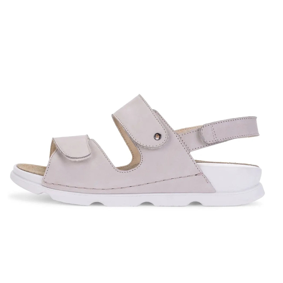 Женские ортопедические сандалии Berkemann Livana – комфортная спортивная модель из натурального нубука, подходящая для повседневного ношения и долгих прогулок на природе и в городе. Фиксация и регулировка по подъему и полноте осуществляется за счет двух мягких кожаных ремешков по подъему и заднего ремешка на липучке велкро, которые обеспечивают полное раскрытие и легкость надевания и снятия.