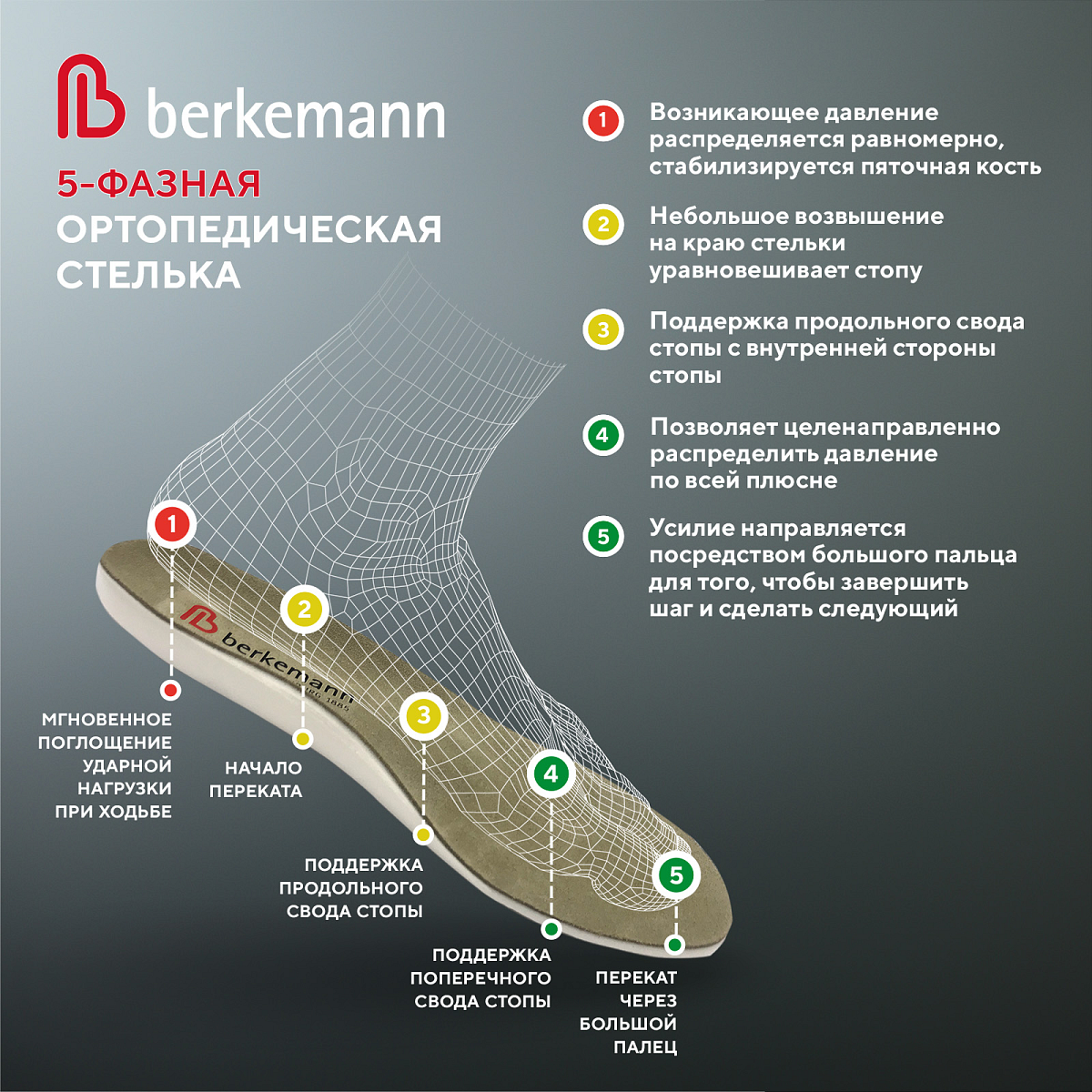 Внутри обуви вложены съемные ортопедические пятифазные стельки с поддержкой сводов и покрытием из износостойких материалов, которые можно мыть. Обувь проста в уходе.