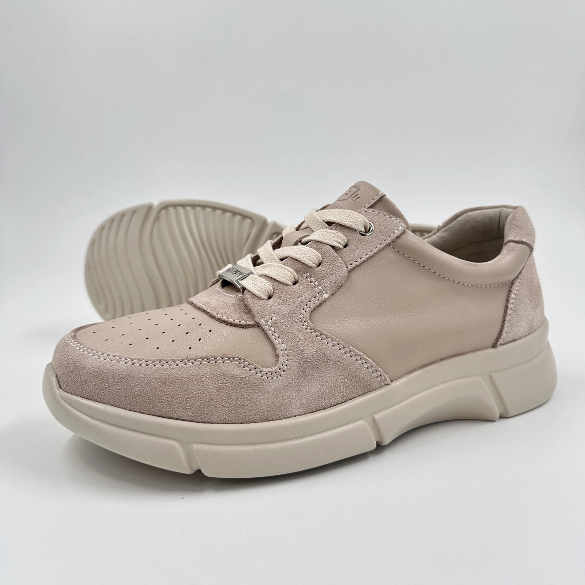 Женские ортопедические кроссовки Ortmann Comfort Anina — легкая дышащая модель, выполненная из сочетания натуральной кожи, замши и дышащего текстурного текстиля. Конструкция обуви мягко подстраивается под стопу и подходит для повседневной носки и долгих прогулок. Особое расположение швов и увеличенная внутриобувная конструкция учитывают потребности женщин с широкой стопой. Анатомическая пяточная часть с углублением и поддержкой сводов помогает стопе не заваливаться внутрь, сохраняя более устойчивое положение при ходьбе.