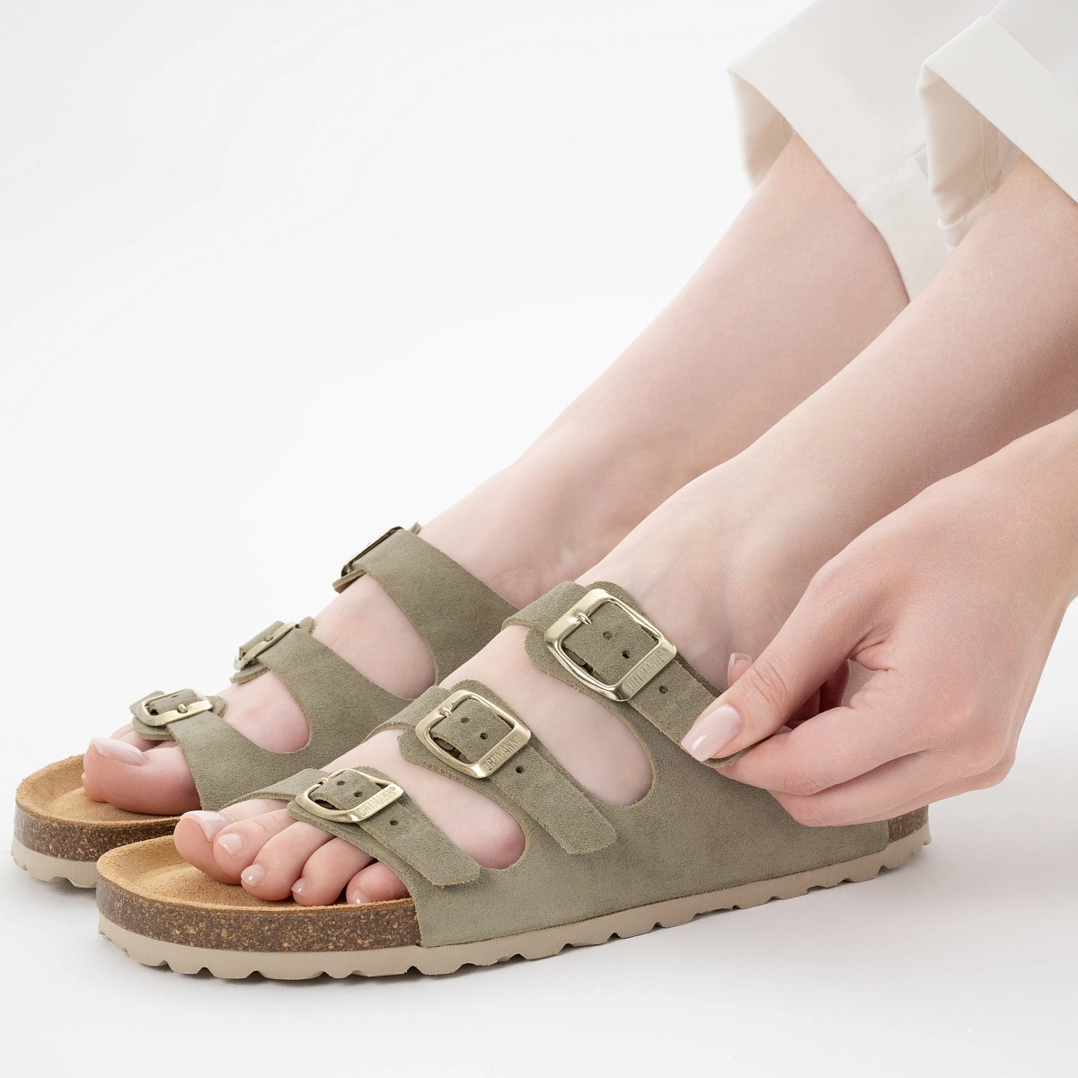Женские ортопедические пантолеты Ortmann Marcel – комфортная модель из натуральной замши на трех ремешках, подходящая для повседневного ношения и долгих прогулок на природе и в городе.