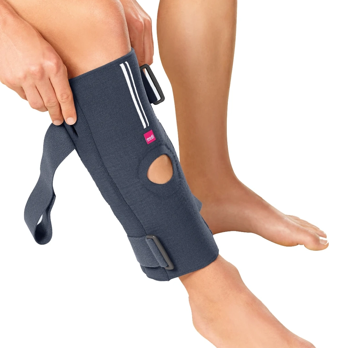 Ортез имеет интуитивно понятный дизайн и прост в использовании. Он надежно стабилизируется на конечности с помощью двух циркулярных ремней. В области подколенной ямки расположен специальный сетчатый материал, который создает дополнительный комфорт при сгибании коленного сустава. Материал Airtex+ обладает свойством адаптивной терморегуляции — в зависимости от температуры внешней среды сохраняет тепло или, наоборот, обеспечивает охлаждающий эффект. Благодаря бактериостатическим свойствам ткани замедляется рост бактерий и снижается вероятность появления неприятного запаха при длительном использовании ортеза.